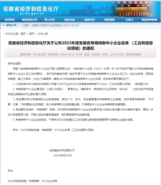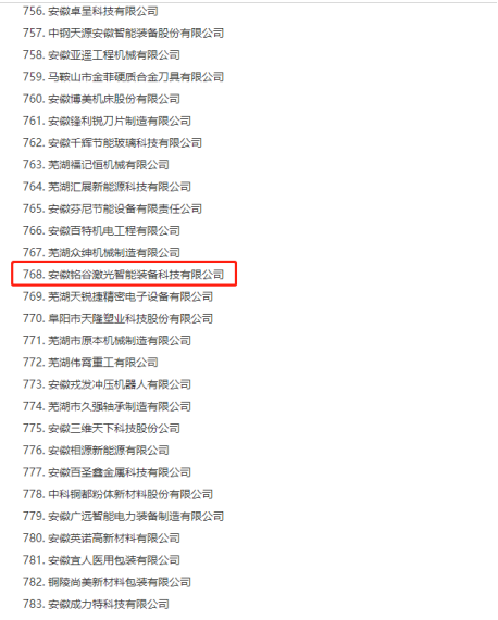 近日,安徽省經濟和信息化廳公布2023年度安徽省“專精特新”中小企業名單,安徽銘谷激光智能裝備科技有限公司、成功入選!